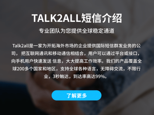 在选择网络国际短信群发平台时,一定要选择有资质的平台,需要配备营业执照、电信增值业务许可证、增值电信业务经营许可证等。推荐大家使用talk2all国际短信平台,能提供免费测试条数。提供短信验证码、短信营销、短信通知等服务。